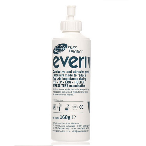 Przewodzący i ścierny preparat do zmniejszania impedancji skóry pacjenta podczas badań EKG, Holtera, wysiłkowych i EEG. Pasta ścierna EVERI skutecznie oczyszcza powierzchnię skóry z martwego naskórka, nawilżając jednocześnie jej wierzchnią warstwę, co zapewnia uzyskanie wysokiej jakości zapisu badań ekg oraz eeg.
