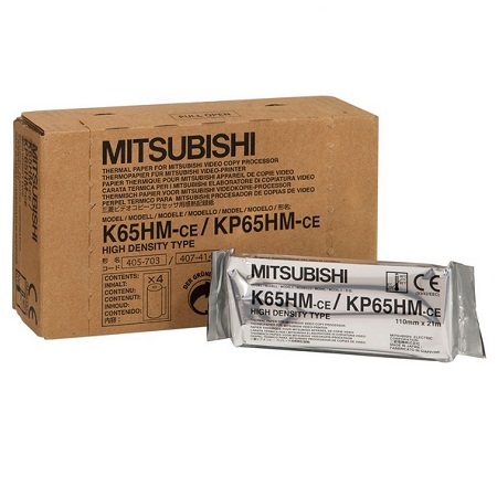 Oryginalny, termoczuły papier Mitsubishi K-65HM, przeznaczony do użytku w czarno-białych videoprinterach firmy Mitsubishi.
